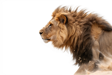 male lion is running isolated on transparent background
