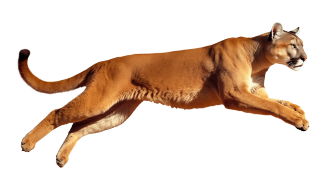 mountain lion or puma leap jump on isolated white background, PNG