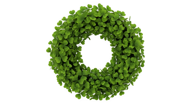 Wreath made of small green clover leaves forming the shape of the letter o, isolated on transparent background