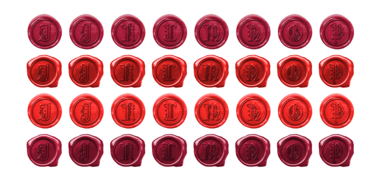 Wax Seal Monogram Alphabet Letters I, J, K, L, M, N, O, P, Set