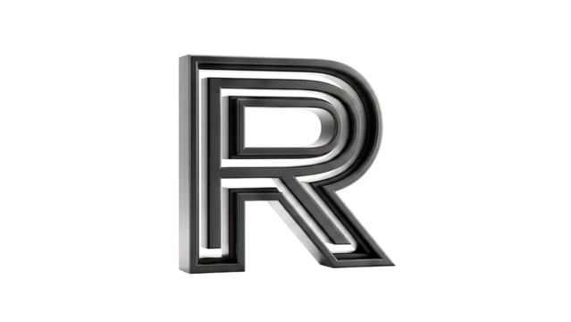"R" wording or text with pieces of torn or cut paper, design elements isolated on transparent background.