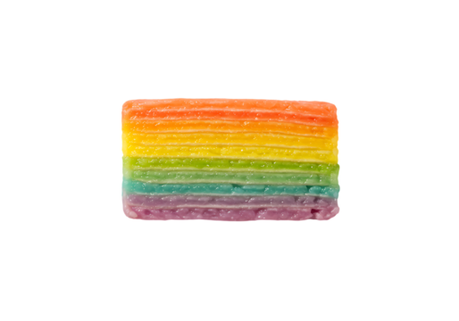 Kue Lapis Rainbow. Rice Rainbow Layer Cake is a cake made from rice flour, starch, sugar, eggs and natural coloring, isolated on white or transparent background. PNG