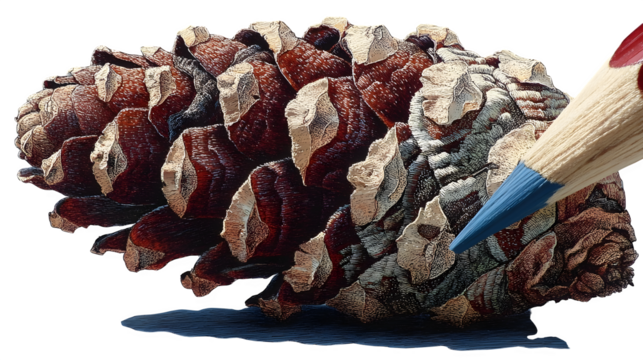 A realistic pinecone with detailed scales, highlighting nature?s intricate design, shown on white --ar 16:9 --v 7.0 --s 750