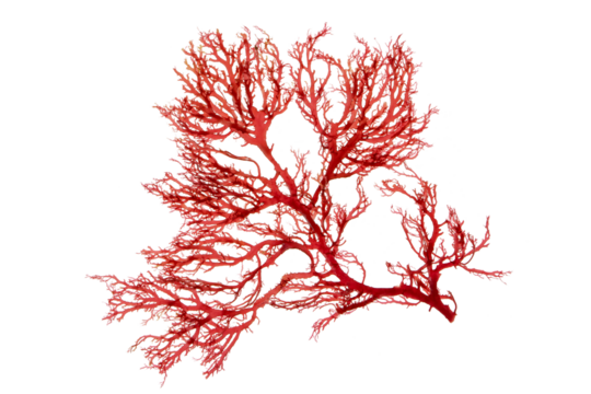 Red algae or seaweed branch on transparent background, png