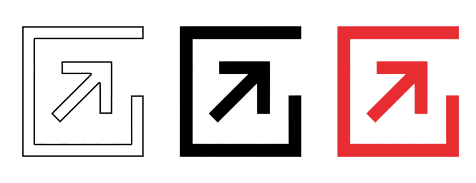 A white and red arrow icon set on transparent background for navigation and direction