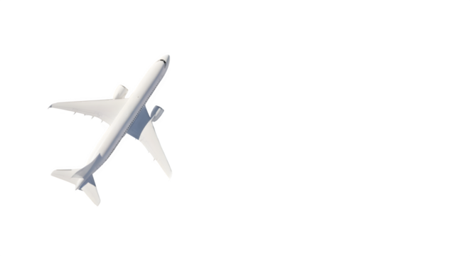 A white airplane flying isolated on a transparent background