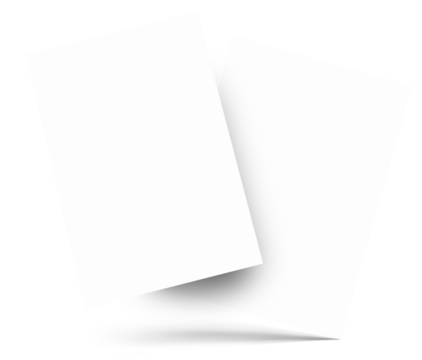 Blank white paper sheet template with soft shadows, mockup a4 vertical document with transparent background