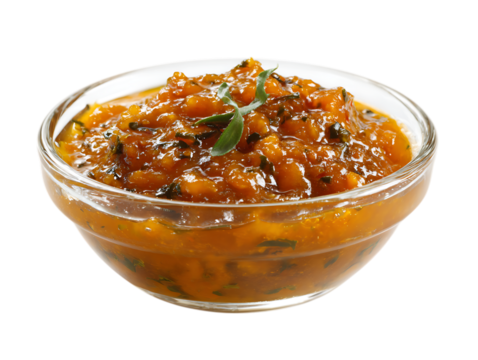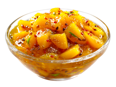 Bangladeshi Aam Tok Mango Chutney in a Bowl on transparent on white background