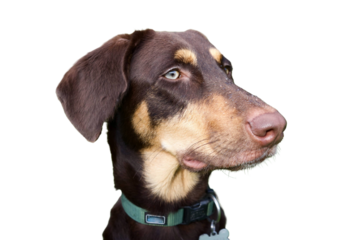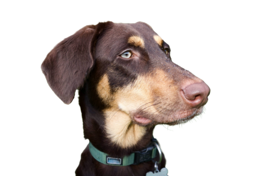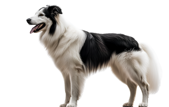 A white and black English Shepherd dog standing on a transparent background