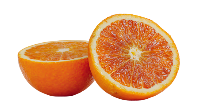 Two halves of a blood orange isolated on transparent background