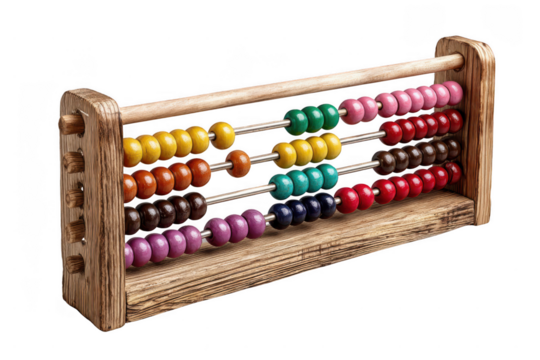 Colorful wooden abacus with beads for counting isolated on transparent background