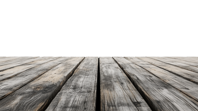 An old empty pier with a fragile wooden plank floor on transparent. PNG