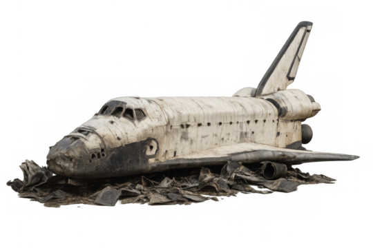 Weathered concrete walls revealing structural damage, fragmented debris surrounding abandoned space, transparent background enabling seamless graphic design integration