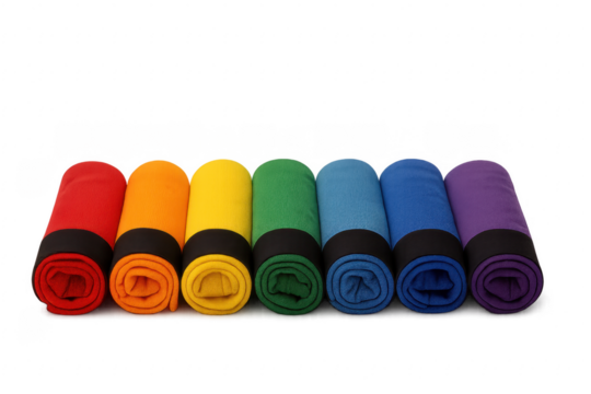 Rolled up colorful boxer shorts forming a rainbow with transparent background