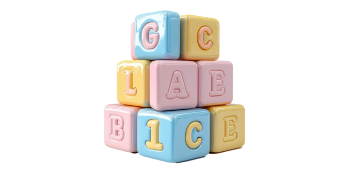 Colorful alphabet blocks isolated on transparent background.