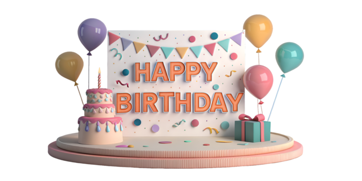 3d happy birthday card on transparent background