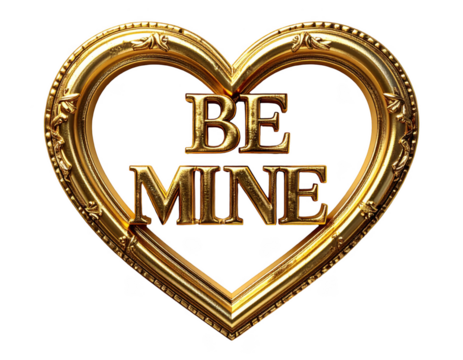 3D golden Be Mine text inside a heart-shaped frame,white background.
