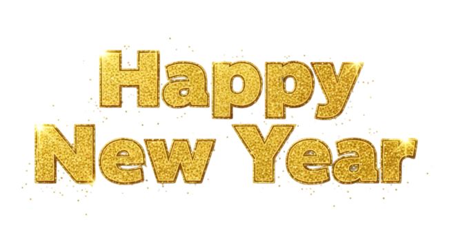 Minimal Elegant Happy New Year Gold Lettering PNG