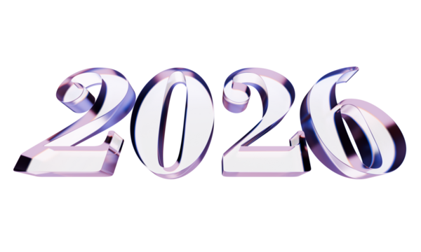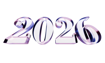 Colorful 2026 numbers isolated on transparent background for celebration