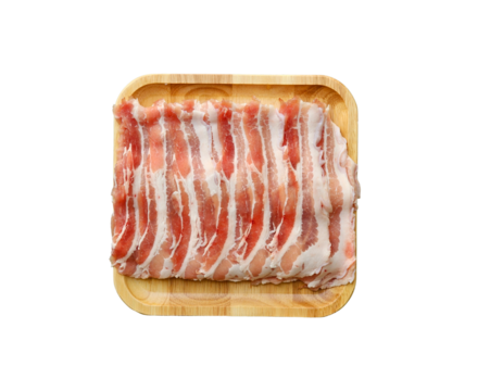Pork belly slices on a wooden plate for shabu, hot pot, grill, korean BBQ. on transparent background