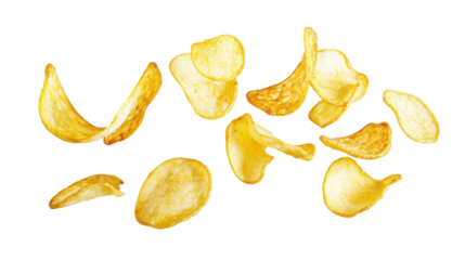 Crunchy potato chips snack kitchen table food indoor delicious treat for parties isolated on transparent background