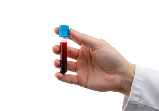 Gloved Hand Holding a Blood Sample Vial Labeled Hepatitis A Against a Transparent Background