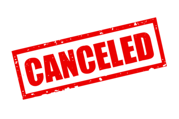 Cancelled rubber stamp marking an agreement or transaction as void, rejected, or terminated on transparent background