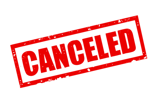 Cancelled neon sign representing rejection, termination, or invalidation of events, services, or documents
