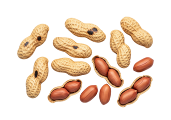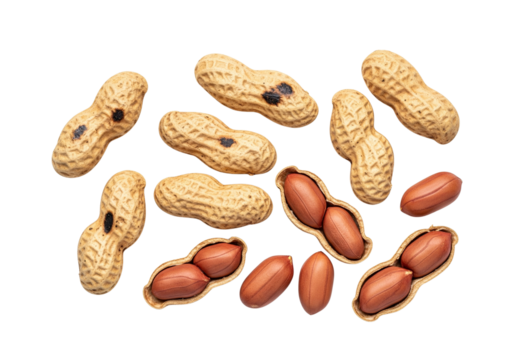 Peanuts Galore: Whole Unshelled, Cracked, and Shelled Kernels Isolated on White Background. A Healthy and Protein-Rich Snack.
