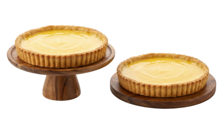 Two Lemon Tarts on Wooden Stands, Freshly Baked Dessert Isolated