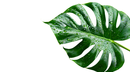 Tropical Leaf with Water Droplets Lush Green Foliage Nature Background