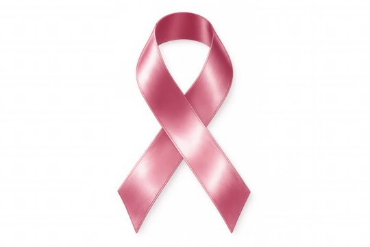 Pink ribbon symbolizing breast cancer awareness, support, and hope on a transparent background