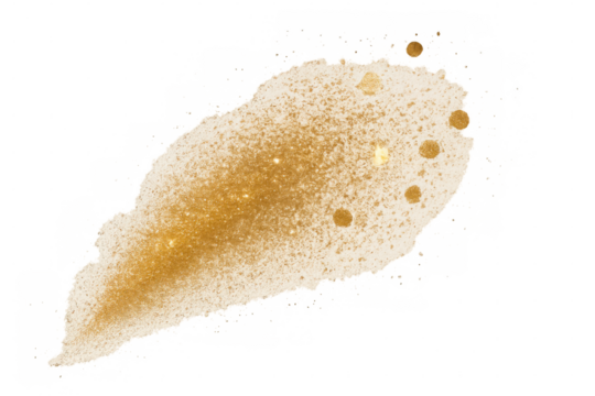 Gold glitter brush stroke texture with sparkle dust on transparent background, celebrating luxury and festive design