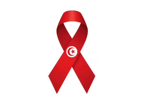Red awareness ribbon featuring the tunisian flag emblem, isolated on transparent background, symbolizing support and solidarity for aids or other health causes in tunisia