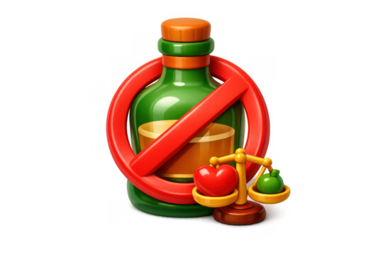 Cartoon alcohol prevention icon with no drinking sign and healthy choices balance for healthcare campaign
