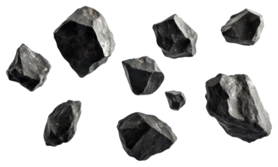 PNG Black asteroid belt background floating elements.