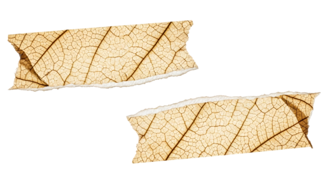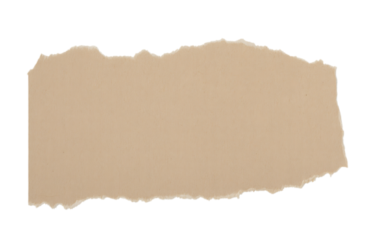 A single, horizontally oriented light beige paper with torn, ragged edges and subtle creases, natural texture, isolated on a pure transparent background with copy space, top-down view. Concept for
