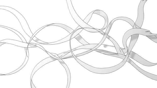 White curly ribbons on black background isolated on transparent background