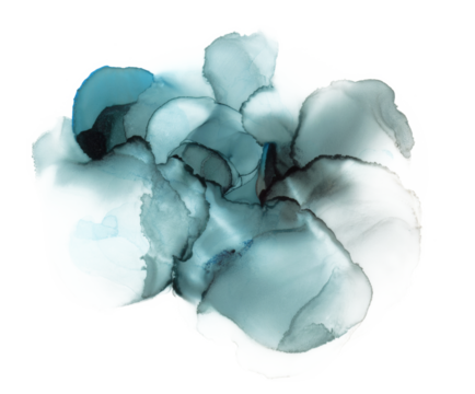 Png Abstract smoke blot watercolor blue color painting on transparent background. Marble alcohol ink.