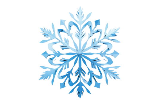 Intricate blue watercolor snowflake isolated on transparent background. Snowflake paper isolated on white background.