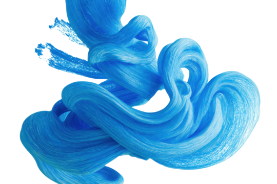 Abstract light blue ink flow brush shape transparent PNG isolated background. Vibrant, vivid, colorful art, bright swirl texture design