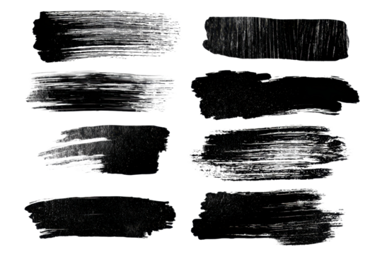 Abstract black ink paint brush stroke shape transparent PNG set bundle, isolated white background. Creative brushes pattern art design