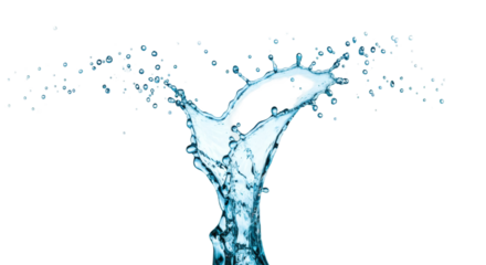Spherical blue liquid burst on transparent background.