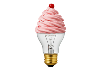 Isolated light bulb with pink swirl soft serve ice cream topping, creative new idea