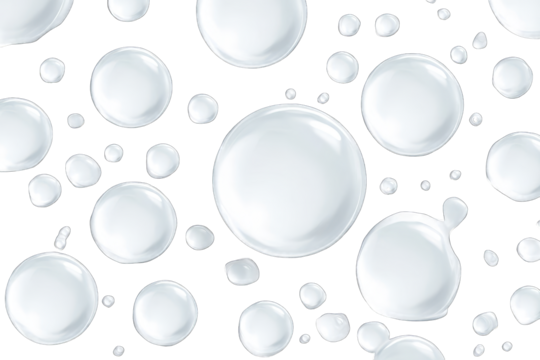Abstract pattern of translucent white circles, resembling bubbles or droplets, on black background