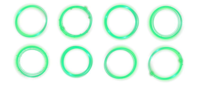Neon green glowing circular portal PNG with bright radiant halo, smooth energy swirl and transparent background ideal for sci-fi interfaces, futuristic digital designs, abstract motion graphics and mo