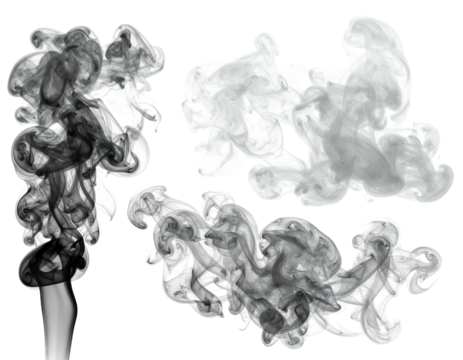 Several swirling, smoky wisps of varying shades against a transparent background