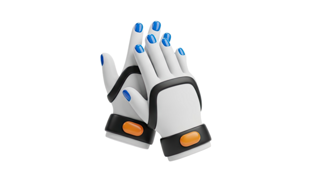 3D Stylized Hands with Blue Nails and Orange Accents on transparent background