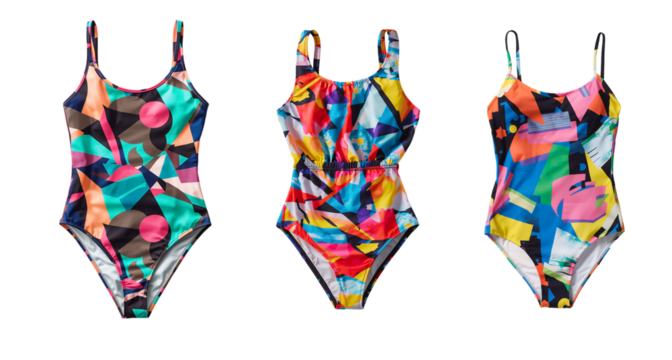Beautiful swimsuit with a abstract print isolated on a transparent background