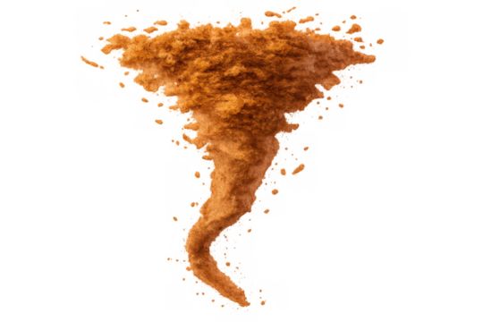 Sand tornado forming with orange dust particles swirling, creating a powerful vortex and desert storm concept on transparent background